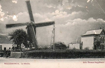 De weduwe Colette Maes-Slachmuylders schonk op 26 januari 1885 "de geheelheid van een huis, schuur met stallingen, windmolen, erve, hof en andere aanhorigheden tegen den ijzeren weg van Boom naar Brussel" aan Corneel Jozef Edmond Maes-Van Horenbeeck, molenaar te Willebroek (notaris Peeters).