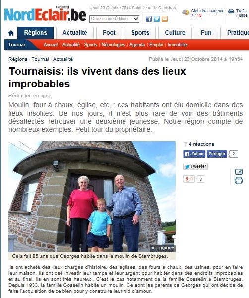 "Tournaisis: ils vivent dans des lieux impropables", Nord-Eclair, 23.10.2014.