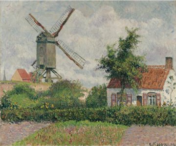 De beroemde impressioniste schilder Camille Pissarro (1830-1903) schilderde de molen in 1894, tijdens zijn verblijf in ons land, nadat hij Frankrijk was ontvlucht na de moord op de Franse president Sadi Carnot. Het kunstwerk van 54 bij 65 cm groot werd in 2007 bij Sotheby's in New York verkocht voor 1.048.000 dollar. Dat komt overeen met een bedrag 774.000 euro! De gemeente Knokke-Heist had interesse maar vond dat bedrag toch te hoog.