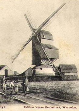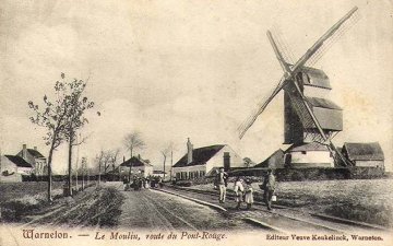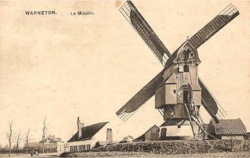 Sous l'Ancien Régime et jusqu'à leur destruction en 1914-1918, les moulins à vent de Warneton étaient groupés le long de deux axes: la chaussée d'Ypres et la chaussée de Lille. Cette multiplication en des lieux proches était due au statut des terres: la seigenurie de Warneton voisinait là d'autres fiefs. Des cartes des années 1720-1730 montrent bien l'emplacement de ces moulins dont un moulin à vent cité dès 1316.