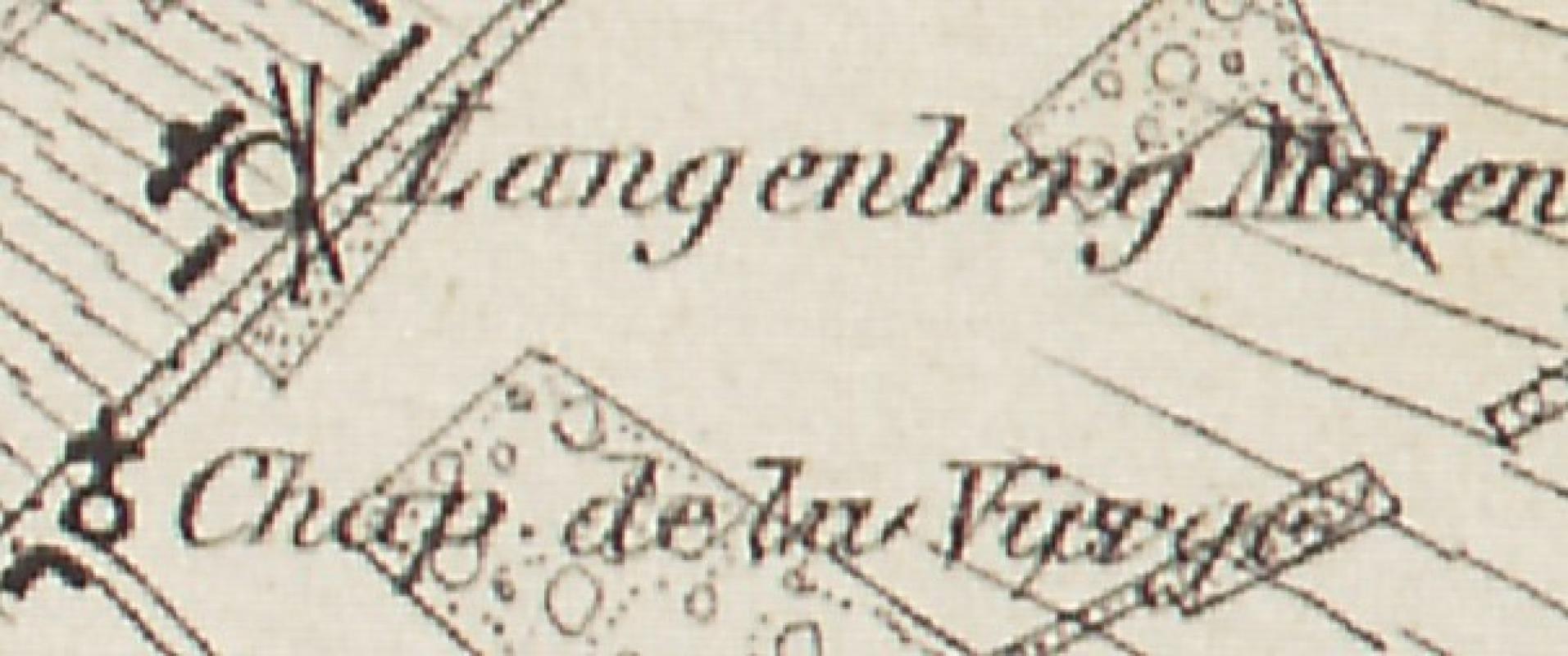 - op de topografische kaart van Vandermaelen (ca. 1850) als "Langenberg Molen"