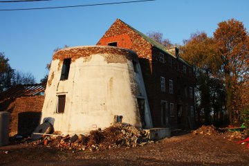 De fel ingekorte romp had aanvankelijk een schuine afdekking, thans is die vlakgemaakt. De molen en de vroegere maalderij werden in 2009 gerenoveerd en zijn thans ingericht als woonhuis.