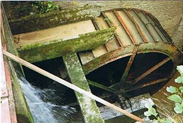 Bij de restauratie vernieuwd geklonken ijzeren waterrad met grote diameter (3,6 m). Afgeronde gemetselde asput. In de doorgang naast het metalen bovenslagrad (diameter 3,6 meter) maakt het water een val van 3,5 meter. Op de rechteroever is een bypass die eventueel als vismigratiedoorgang kan ingericht worden.