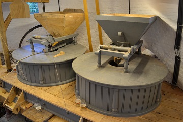 - Mechanische maalderij op benedenverdiepig met twee koppels maalstenen, haverpletter en buil