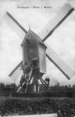 - 1832: "houten standaartmolen hebbende twee paar steenen welke niet gelijktijdig worden gebezigd, ongunstig en in het gehucht Voortkapel gelegen en in een slegten staat, hij is met een huis en andere grondeigendommen verhuerd".