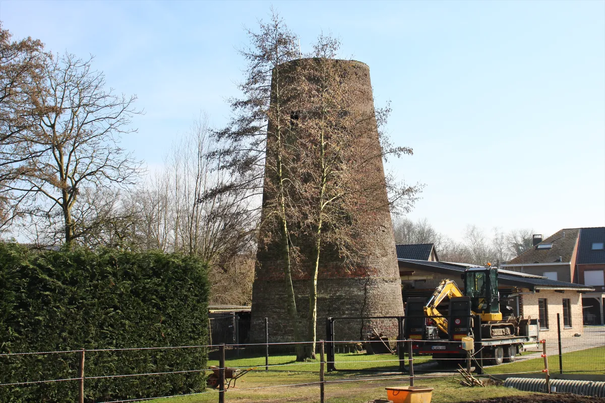- Nog gedeeltelijk : 3 steenkoppels (gedemonteerd), ijzerwerk van de steenkraan, luiwiel, gietijzeren drijfas, restanten mechanische maalderij