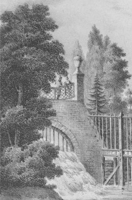 Jobbard, Château à Jette (à Mr. Bonaventure), lithografie uit de Franse tijd. Links de watermolen