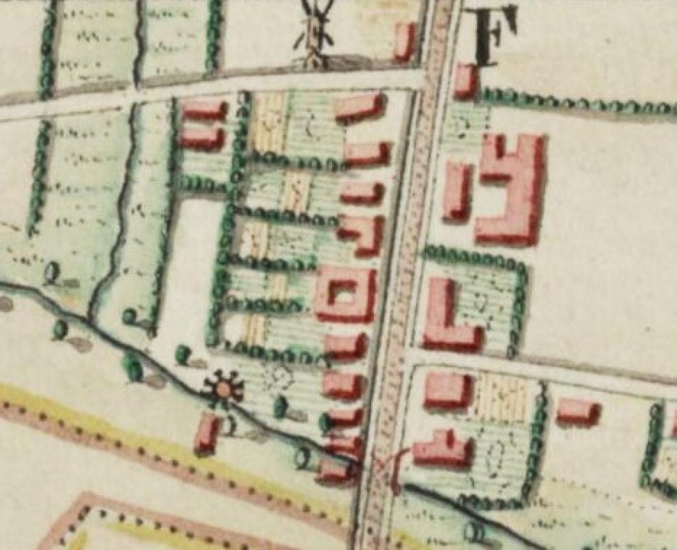 - Ferrariskaart (ca. 1775) met het bruin symbool van een staakmolen