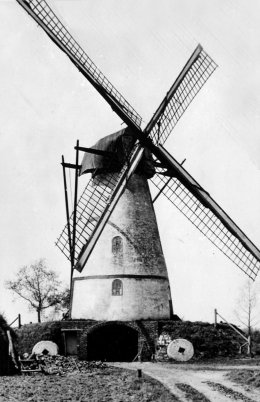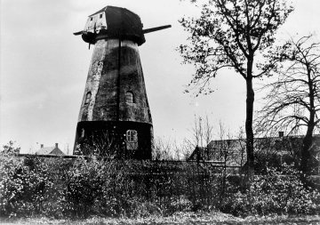 Deze olie- en graanwindmolen, type bergmolen met zijn eigenaardige peperbusvorm, stond aan de westzijde van de Kerkstraat (nr. 7), aan de zuidzijde van de De Meren (straat, voorheen gehucht De Meiren).