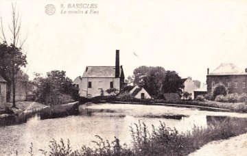 En l’an 1040, Henri le Noir, empereur d’Allemagne, fit don du village aux abbés de Saint-Ghislain. Ce titre de propriété ne mentionne pas l'existence du moulin à eau ; cependant les moines indiquent dans une déclaration forcée en 1787 que «le moulin de Basècles, avec 4 bonniers 3 journels de pâture, et 120 verges de prés, est affermé au rendage annuel de 700 livres. Le titre de l'abbaye à cet égard est la donation ou confirmation de l'empereur Henri en 1040”(1)