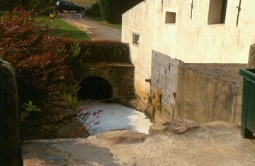 Cette structure est prolongée par un barrage de terre encore nettement perceptible dans la prairie voisine. Ce barrage coupe la vallée en son point le plus étroit et devait permettre une importante accumulation d'eau vers l'amont.