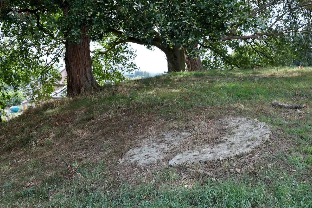 De waterbakken op de weide dateren nog uit de tijd van de werkende molen, om de paarden te laten drinken. Er ligt nog één molensteen op de zijkant van de molenheuvel