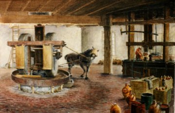 1. Het breken van de zaden: de kollergang.
