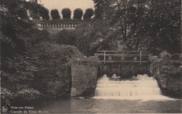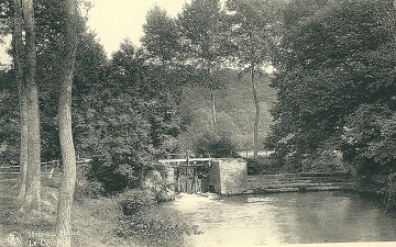 Le moulin se positionne à l'extrémité d'une longe dérivation qui suit la rive droite, alors que le cours principal décrit plutôt ses méandres du côté de la rive gauche. Curieusement, deux courants d'eau contribuent à l'alimentation de cette dérivation. Le premier se détache du cours principal à hauteur du passage dit "sentier de la Gare". L'autre (peut-être dans les restes d'un ancien lit) se rattache au cours principal de l'Eau d'Heure à plus d'un kilomètre en amont (emplacement d'une vanne). L'existence de cette seconde branche de la dérivation tient probablement à la présence d'un ancien tordoir à hauteur du chemin de Hameau, dans le secteur de la gare. On trouve d'ailleurs là un autre point traditionnel de traversée de l'Eau d'Heure