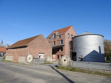 La roue a disparu. Une annexe est établie en bordure de la voirie. Quatre meules ont été préservées et érigées en décoration à l'extérieur (de part et d'autre des accès qui s'ouvrent de chaque côté de l'annexe).