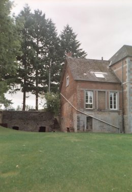 A gauche et à droite de ce volume central apparaissent des ailes de même allure. L'une et l'autre sont plus basses que le volume principal. Leur hauteur se limite à un niveau (côté moulin) et à trois courtes travées. Vers l'ouest, un dernier volume présente des caractères du même type et vient s'acoller perpendiculairement à l'aile. Il prend toutefois davantage d'extension et de hauteur.
