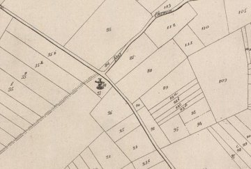 Dominant la vaste plaine, il fut édifié sur une butte au lieu-dit "Bas-chemin" (Bas-k'min), à la croisée de deux chemins agricoles, l'un reliant le centre du village à la Ferme Blanche, l'autre le hameau de Maraîche à Quatre-Chins.