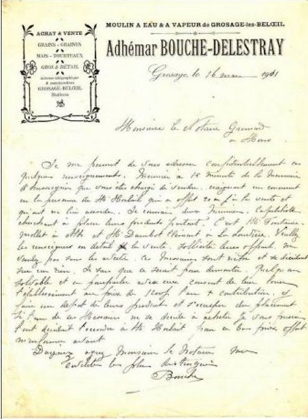 In 1911 werd de "Moulin à Eau et à Vapeur" uitgebaat door Adhémar Bouche-Delestray (dit volgens een brief aan notaris in Bergen die belast is met de verkoop van een maalderij in het nabij gelegen Huissignies).