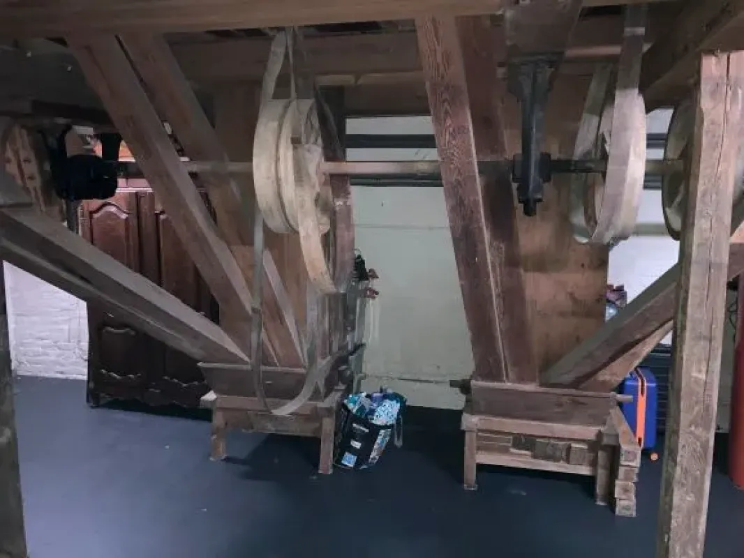 In mei 2016 kocht ik in Lahamaide (Henegouwen) een huis met een mechanische maalderij. Op de gevel staat het bouwjaar 1924. Deze maalderij is nog volledig met tandwielen, molensteen, banden, wielen... en werd aangedreven door een grote elektrische motor.