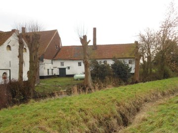 Aan de Mottekensstraat 12 vinden we de halfgesloten hoeve "Het Motteken". Aan de ingang liggen de molenstenen van een steenkoppel van de vroegere drafrosmolen. Deze rosmolen werd in 1873 ingericht in het gebouw naast de jeneverstokerij, schuin achter het woonhuis. Deze rosmolen werd vergund door de Bestendige Deputatie van de provincie Oost-Vlaanderen in 1858 aan Pierre Joseph Van Roy. Maarten OSSTYN, Adegem ------------ Over Het Motteken (Chris Bogaert & Mieke Verbeeck, Agentschap Onroerend Erfgoed) Mottekenstraat nr. 12. Hoeve Motteken of “Het Motteken”. Omgracht semi-gesloten hoevecomplex op het einde van de straat gelegen in het landelijke zuidoosten van Denderbelle, palend aan de grens met de deelgemeente Wieze. Als omgrachte hoevesite naast de Meysbeek teruggaand op het vroegere “Hof te Meys”, als dusdanig al vermeld in 1572/1577. Een oude oorsprong van de site wordt verondersteld omwille van een mogelijke relatie met de locatie op de grensscheiding van het land van Dendermonde en het land van Aalst. Op de tiendekaart van de abdij van Zwijveke (Dendermonde) van 1737 weergegeven als hoeve met losse bestanddelen met enkelvoudige omgrachting; de onregelmatige vijfhoekige vorm is in de huidige site met walgrachten nog herkenbaar aanwezig. In de 19de eeuw is de benaming het Motteken als hoevenaam in gebruik (cf. o.a. het kadastraal plan van 1817). Door huwelijk in 1825 ging de hoeve van de familie Beeckman over in handen van Van Roy. Volgens archiefstukken werd in 1858 aan Pierre Joseph Van Roy vergund om een jeneverstokerij op te richten (in 1858 gekadastreerd nieuw afzonderlijk gebouw in de zuidwestelijke erfhoek, nog vergroot in 1866). Ernaast kwam nadien een drafrosmolen tot stand (1873 volgens kadasterarchief). De stokerij was in 1897 uitgerust met een stoommachine. In 1903 zou de stokerij zou volgens gegevens van het kadasterarchief omgevormd zijn tot een stoombrouwerij. Deze brouwerij werd in 1911 vergroot na de bouw van de nieuwe woning (1905). De “Brouwerij Het Motteken” van de familie Van Roy hield in 1937 op te bestaan. In 1946 werd de hoeve aangekocht door de benedictijnenabdij van Dendermonde, sindsdien uitbater van het landbouwbedrijf.