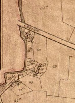 Moulin à eau dit "del Rouge" ou "moulin Devogelaer", en bordure de la chaussée de Soignies à Enghien, sur la Senne (section A n° 52b).