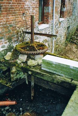 La haute cheminée carrée d'une machine à vapeur s'élevait naguère dans cette partie du moulin. Elle témoignait à tout le moins du fait que l'énergie hydraulique y avait été épaulée sinon remplacée par l'énergie produite à partir d'une machine à vapeur. C'est le moment de souligner que le succès de ce moulin tenait bien sûr à l'importance du débit de la rivière mais sans doute tout autant au fait de la coïncidence avec le tracé de la chaussée.