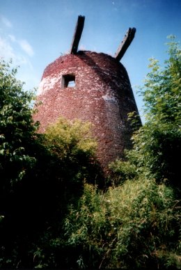 Le Blanc Moulin a la forme d'un fût tronconique et se trouve installé sur une butte artificielle qui lui donne évidemment un rielief supplémentaire. Dans cette butte, une cave couverte d'une voûte subaissée en brique sert d'abri pour les animaux gardés dans la pâture voisine.
