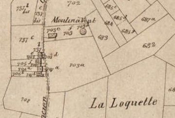 Op de Kadastrale Atlas van P.C. Popp (ca. 1860) zien we op perceel Péruwelz sectie B nr. 703d de "Moulin de Loquette". (Geen legger voorhanden).