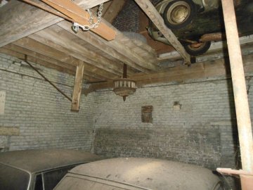 De zoldering omvat nog een aantal moer- of vloerbalken. Een groot deel ervan verdween toen er rond 2000 auto's opgesteld werden. Op het enige stuk waar de vloerbalken nog intact zijn, ligt nog een gaaf bewaard steenkoppel. De binnentrap werd vervangen, maar staat op dezelfde plaats als de oorspronkelijke.