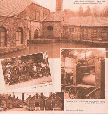 Dans les abbayes cisterciennes, le travail était à l'honneur "Ora et Labora"; dés leur installation à Moulins, les moines avaient implanté un moulin seigneurial à farine. Au cours des temps, un moulin à huile et surtout un moulin à papier les avaient engagés dans le monde industriel dés le XVIIe s. Des travaux hydrauliques considérables avaient été poursuivis à cet effet : biefs, canaux, endiguements, trois étangs, réservoir d'eau, maison éclusiére, coursiers d'eau, vannages tendant à maîtriser le cours de la Molignée pour optimaliser les "coups d'eau".