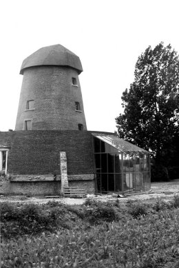 Thans resteert nog de ingekorte molenromp met een nieuwe nepkap, die gerenoveerd werd tot een wooncomplex.