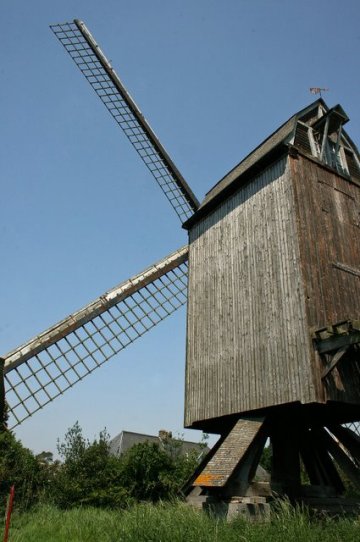 La présence de moulins est attestée dès le XVe siècle. Nos régions aux nombreuses rivières, ont privilégié les moulins à eau, la force de l'eau étant plus facile à maîtriser que celle du vent. Pour profiter au maximum des courants atmosphériques, un moulin à vent devait se situer au milieu d'une vaste étendue découverte. Le Brabant wallon compte encore quelques moulins à vent en brique tel celui de Nil-St-Vincent, Saintes ou Opprebais. Ces moulins du type "tour" ont une toiture mobile tandis que notre moulin, entièrement en bois, de plan carré, a un corps tournant.