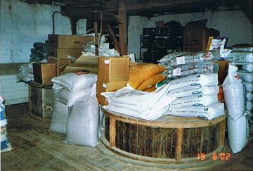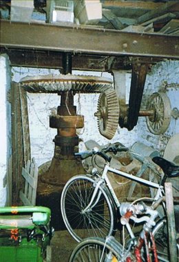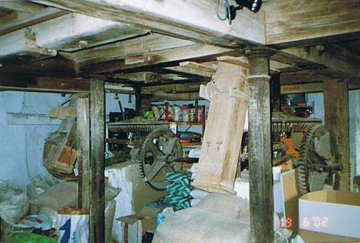 Het binnenwerk, met twee steenkoppels, en de turbine zijn nog aanwezig.