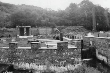 Un peu en amont de cet aménagement du cours d'eau, le parc conserve les traces d'un important équipement hydraulique, dit "la Brockmanne". Quatre logettes étaient destinées à "contenir" autant de grandes roues à aube. La partie centrale d'une de ces roues occupe encore la première logette. Une haute roue métalliqe (assez dégradée) est toujours visble dans la dernière logette. Ces roues étaient actionnées par le dessus à partir d'une dérivation établie sur le flanc du versant droit de la vallée. La hauteur ainsi acquise est remarquable. Le débit habituel de la Biesme permettait de disposer à cet endroit d'une source assez considérable d'énergie.