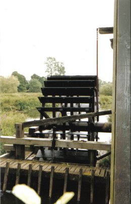 - Brede houten onderslagrad (diameter 4,50 m, breedte 2,40 m)