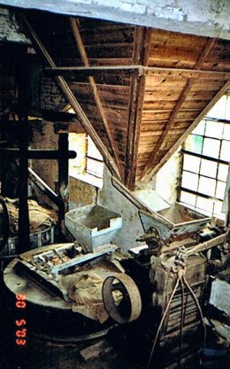 La roue et la machinerie (deux couples de meules, briseur d'avoine) existent encore.