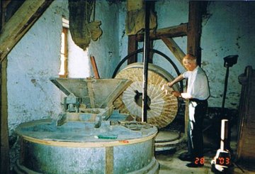 Evidemment, On ne moud plus de pavot aujourd'hui. Le moulin de Fallais était utilisé pour fabriquer de la farine. Le principe est simple, la roue entraîne un axe, qui entraîne un engrenage qui permet d'actionner deux meules qui écrasent le blé... Le grand père du meunier actuel travaillait dans ce moulin dans l'entre deux guerres. En plus d'y moudre de la farine, le meunier de l'époque avait relié le moulin à une dynamo. Il alimentait ainsi le village en électricité. Le propriétaire du moulin ne produit plus de farine aujourd'hui, mais il ingénieusement transformé le système pour produire de l'électricité en quantité suffisante. Le débit de l'eau fait tourner la roue, le mouvement de cette roue actionne l'axe central entrainant des engrenages. L'action mécanique concentre cette énergie dans un générateur. C'est ainsi que l'électricité est produite. Ce moulin produit un courant d'une intensité de 220V et d'une puissance 4kW / h.Le propriétaire souhaite ainsi produire 50 000 kW à l'année dont 40 000 pour alimenter deux foyers. Le reste sera redistribué sur le réseau national.