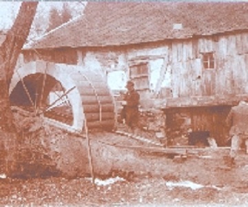 En 1926 la sciérie est devenu ébénisterie. A cette occasion, on a placé une nouvelle roue à eau (type en-dessus, en fer).