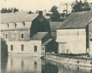 Ce moulin, propriété autrefois de la famille Eggermont, était installé dans le petit bâtiment, situé à gauche de la carte postale. Une dynamo, entraînée par une turbine, fournissait, quelques heures par jour, le courant continu pour le château et la maison du meunier. Florimont Fourneaux a été le dernier meunier avant la deuxième guerre. Antoine Lhoste de Corbion a remis le moulin en fonction pendant les hostilités. Ce dernier animait aussi les kermesses avec un tire-pipes et une friterie.
