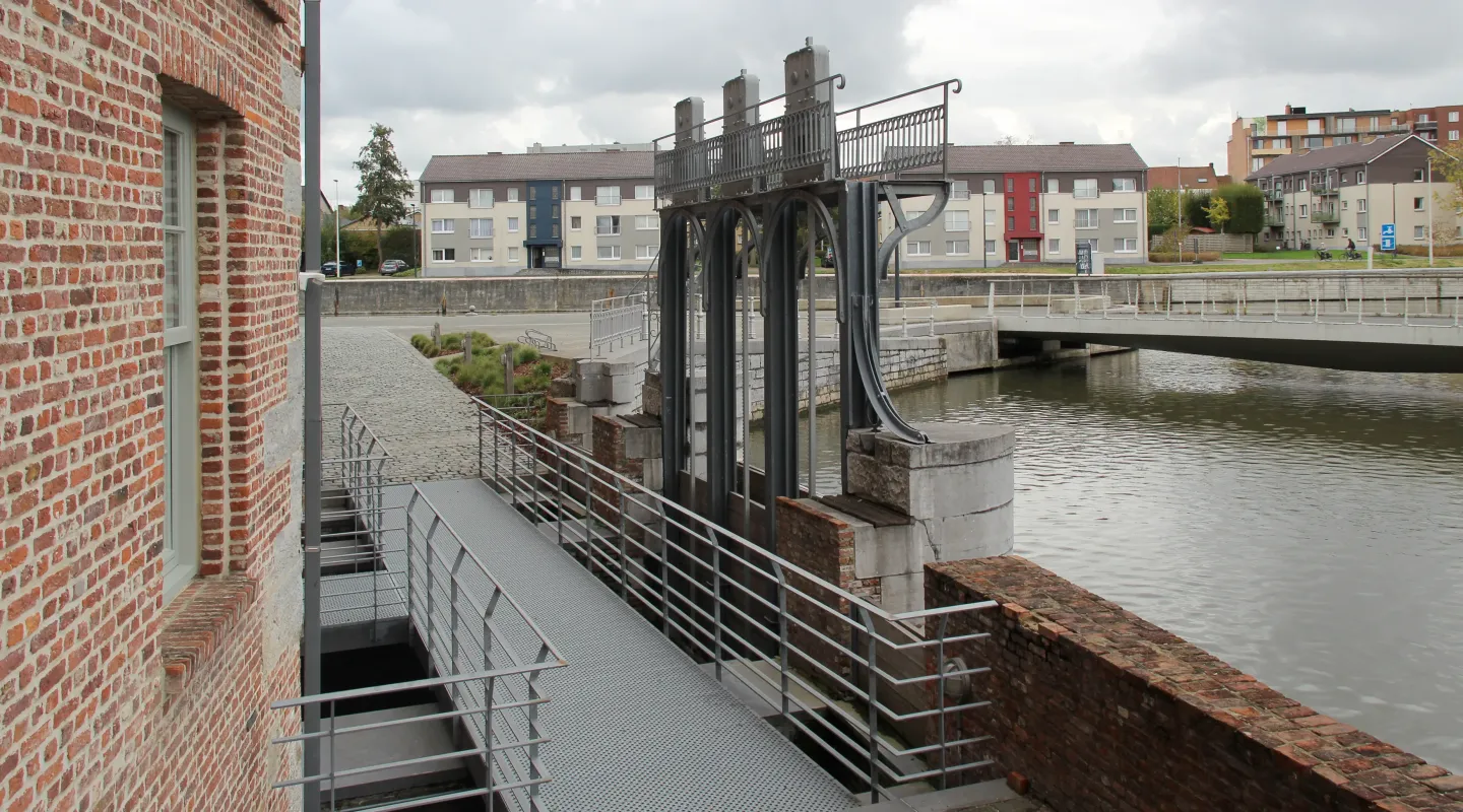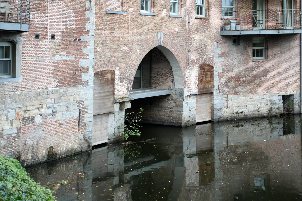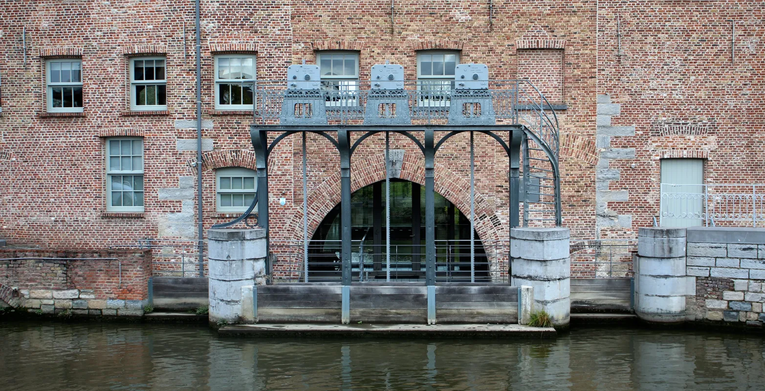 Molen: Harelbeke (W.-Vl.), Banmolens, (Oude Watermolens - industriële watermolen met Francis-turbine, gerenoveerd tot lofts en kleine waterkrachtcentrale
