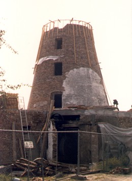 In 1984 werd de restauratie gestart, die tot 1990 zou aanslepen. Ontwerper was ir.-arch. Walter Snauwaert uit Oostende (°Ingelmunster 1928 - +Oostende 2011). Bij die restauratie werd een haspelkruis aangebracht voorzien van jaloezieklepoen (zelfzwichting), alhoewel dat vroeger nooit over het gehele wiekenkruis voorkwam (zie ook hoger). Probleem van bij het begin is dat het kruis ongeschikt is om te draaien: te zwaar, bouten bij de askop komen los. De boerderij, waarin vroeger de bakkerij was ingericht, bleef deels bewaard en is mee opgenomen in het dorpsgezicht. De lage hoevegebouwen zijn in U-vorm rond een gekasseid erf geschikt.
