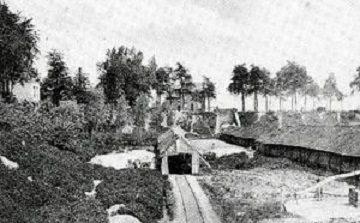 Op de bewaarde foto uit 1907 zien we deze straat op de achergrond met de twee losstaande huizen en een zogenaamde "brug", een gemetste doorgang onder de straat, om de klein vanuit de putten aan te voeren met spoorwagonnetjes naar de "plaats".