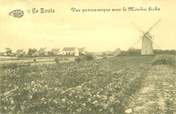 OOSTHOEKMOLEN: ‘maison et ancien moulin de Siska’ (1913) Opdedrinck, Hist. p. 194. C 12 noordoost. Deze molen, die meestal met de naam van Siska, een van de vroegere bewoners aangeduid wordt, was eerst een houten staakmolen, stond vervolgens op een stenen torenkot. Hij werd in 1862 herbouwd in steen. Naar onze mening is de molen opgericht in de eerste helft van de 19e eeuw. De bevolking van de Oosthoek en van de omgevingwas toen heelwat aangegroeid, vooral dank zij het indijken van NHP en ZP. Siska’s Molen staat ca. 300 m ten zuiden van het Paulusfort.