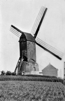 De Katteberg Molen, boven op de Katteberg, links van de baan Kortrijk-Doornijk, scheen te zullen verdwijnen want lange stond ze stille, met en enkele roede geschrankt.