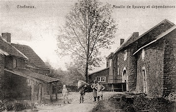 Le bief passait au pied du vieux château pour arriver sur la roue à aubes. Au pesage des sacs, il y avait une grande balance à plateaux. Monsieur Outers avait deux filles, dont la petite, Maria, était le contre-poids idéal. Elle était mince et fluette. Elle pesait 49 kilos 600. Comme les sacs pesaient 50 kilos, le compte était bon. La différence, 400 g, était pour le meunier qui cuisait ses pains pour lui-même, pour sa famille et pour les nécessiteux. Car, pour lui, la solidarité n’était pas un vain mot et il distribuait généreusement ses pains à tout qui était dans le besoin. “Li moûnî Outers”, se. plaisaient à dire les gens du coin, “c'èsteût on vî brave ome! I n’soreû polu fé ritche ! II èsteut ossi bon qu’iI pan qui magnive !” Et ce n’était pas Madame Yvonne Rombaux-Maréchal, la nièce de Maria “dè molin Outers” qui nous contredira. Elle habitait Haute-Saive et elle doit s’en souvenir.