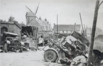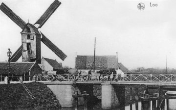 Tijdens de moeilijke oorlogsjaren 1914-’18 en pal bij het front, liet Emiel Debusschere de wieken nooit stilvallen. Verscholen voor het vijandelijk geschut achter de bebouwing en de puinen van Lo zou de molen het oorlogsgeweld bijna ongehavend overleven.