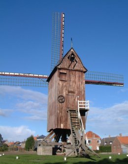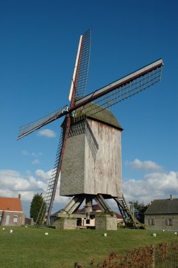 Molen: Leisele (Alveringem, W.-Vl.), Stalijzermolen - staakmolen met open voet