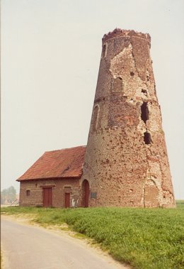 4. De Vredesmolen. Gerenoveerde oorlogsruïne als vredesmonument (zie hierna)