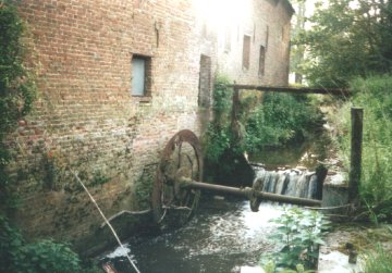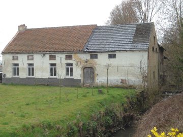 Uit de penningkohieren van Aaigem van 1571 (f° 79v°): "Jan Scollaert gebruyct als proprytarijs eene behuysde stede metten huysse scuere stallen met eenen watermuelen coorenmuelen, daerop staende, groot metten erven 75 roeden ende vanden syden vander beken eenen slachmuelen metten erven gr. 75 r. Al tsamen gextymeert up 8 pont gr. tsrs"
