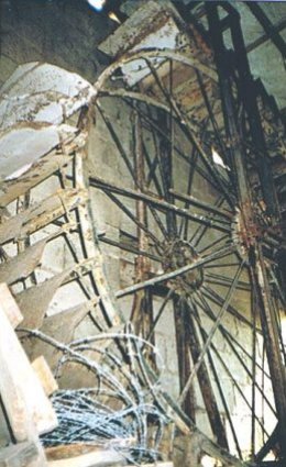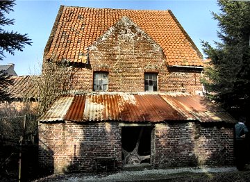 De Pompwatermolen, in eerste zicht, ziet er lamentabel uit. Een groot deel van het pompmechanisme zit onder de grond - is vermoedelijk nog aanwezig - maar laat weinig goeds verhopen, We zullen het pas weten wanneer een en ander weer wordt blootgelegd. De geklinknagelde goot is aan volledige vervanging toe.Lieven DENEWET & Aimé SMEYERS